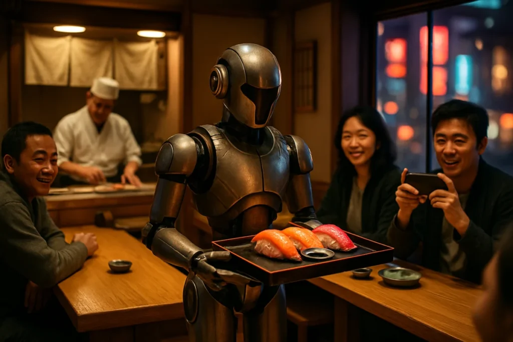 Scopri come i ristoranti di sushi a Tokyo stanno rivoluzionando il servizio con camerieri robot, unendo tradizione e innovazione tecnologica.